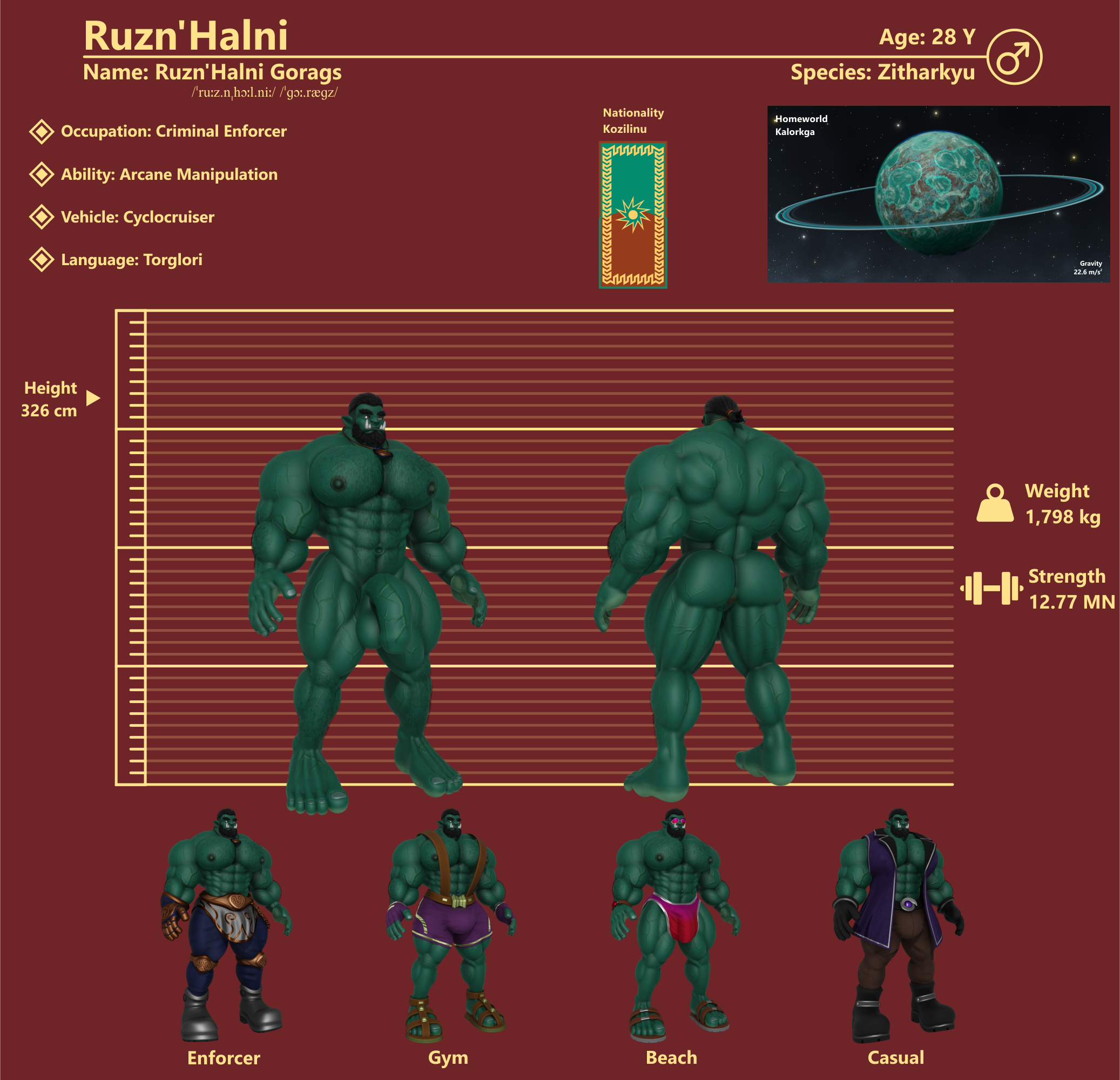 3D model of Ruzn'Halni, an original orc character created by me for Blender & VRChat